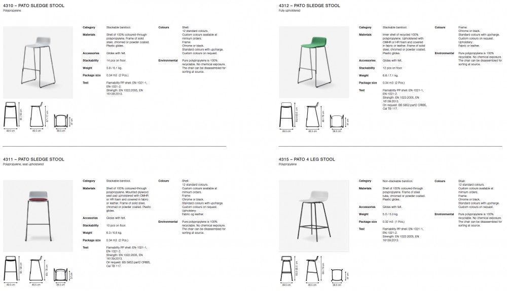 FREDERICIA PATO baarituolin istuin on valmistettu 100% kierrätetystä polypropeenista ja se on 100% kierrätettävä.