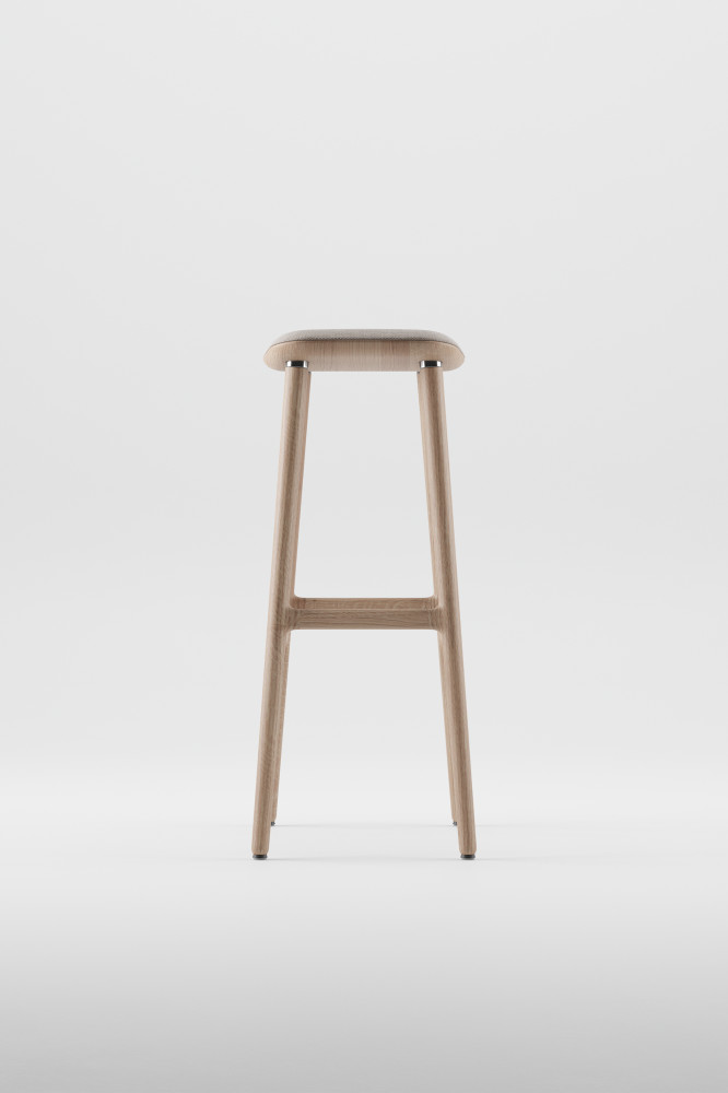 Tuolissa on ergonomisesti muotoiltu istuin ja kevyt mutta vahva massiivipuurunko, joka tuo luonnonmateriaalin lämpöä ja kestävyyttä. Jalkatuki on vakiovarusteena puuta, mutta pyynnöstä se on saatavilla myös ruostumattomasta teräksestä, messingistä tai pulverimaalatusta teräksestä. Lisäksi jalkaan voidaan lisätä koristeellinen metallirengas.