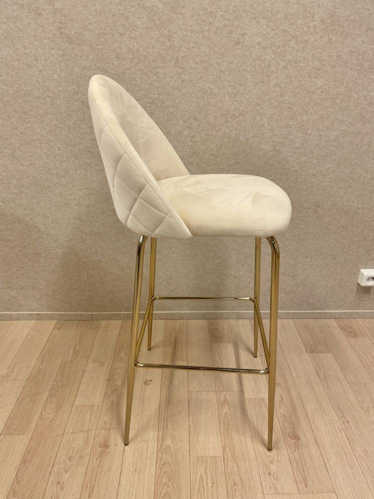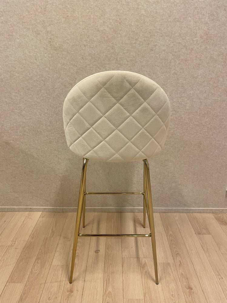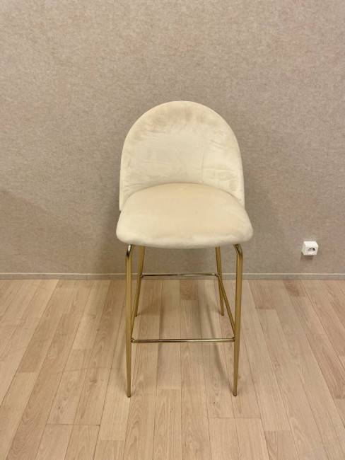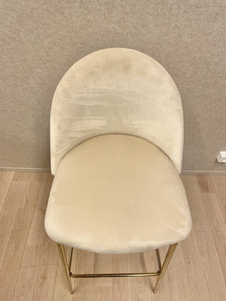 Plyyshikankaalla verhoiltu baarituoli.Kankaissa pieniä käytönjälkiä.