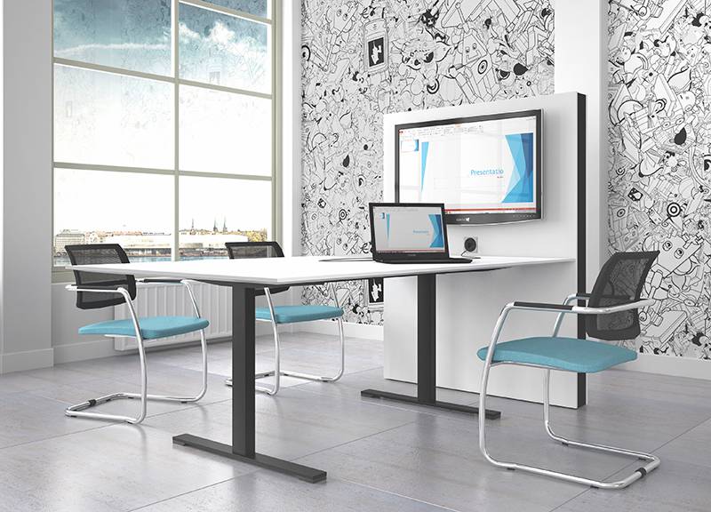 NARBUTAKSEN MEDIA seisomakorkuinen pöytä on kätevä tapa palaveerata. Siinä yhdistyvät kätevästi tämän päivän teknologia ja palaverin paikka.