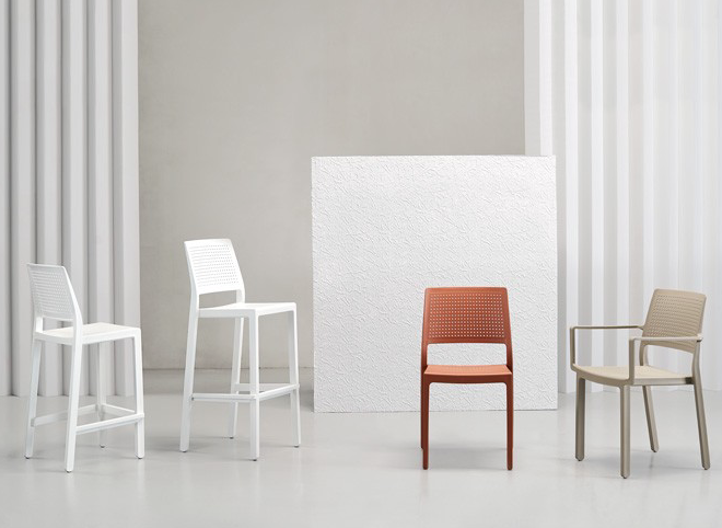 SCAB EMI baarituoli on puhdaslinjainen tuoli ravintoloihin ja kahvioihin. Tuoli on valmistettu kierrätettävästä teknopolymeeristä, joten se soveltuu sekä sisä- että ulkokäyttöön. Ainutlaatuinen jalkojen rakenne mahdollistaa tuolien pinoamisen tilaasäästävästi ja maksimaalisen vakauden.