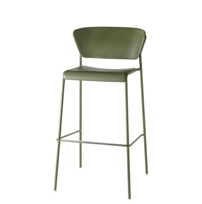 SCAB Lisa Technopolymer pinottava baarituoli on suunniteltu sisä- ja ulkokäyttöön. Metallinen runko ja istuinosa kierrätettyä muovia.