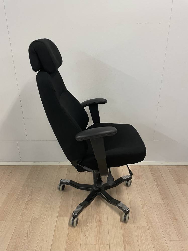Laadukas valvomotuoli uudelleen verhoiltuna julkitilakankaalla.