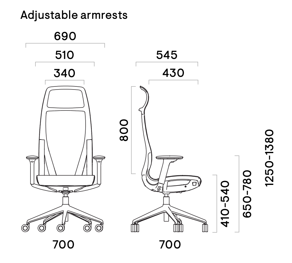 Sekä selkänoja että istuin on valmistettu hengittävästä, joustavasta verkkokankaasta, joka mukautuu kehoon ja antaa napakan tuen. Tuolin säätömekanismit on piilotettu rakenteeseen: sivuilla olevat hienovaraiset säätönapit ja integroitu mekanismi luovat saumattoman ja modernin ulkonäön.