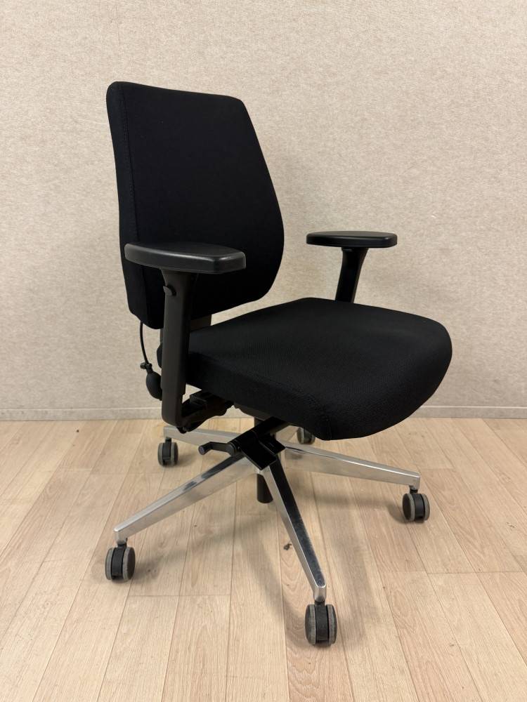 Tämä käytetty, laadukas ergonominen työtuoli tarjoaa laajat säätömahdollisuudet ja tukee optimaalista työasentoa. Musta kangasverhoilu ja kiillotettu alumiiniristikko tekevät tuolista tyylikkään ja kestävän valinnan vaativiin työympäristöihin.