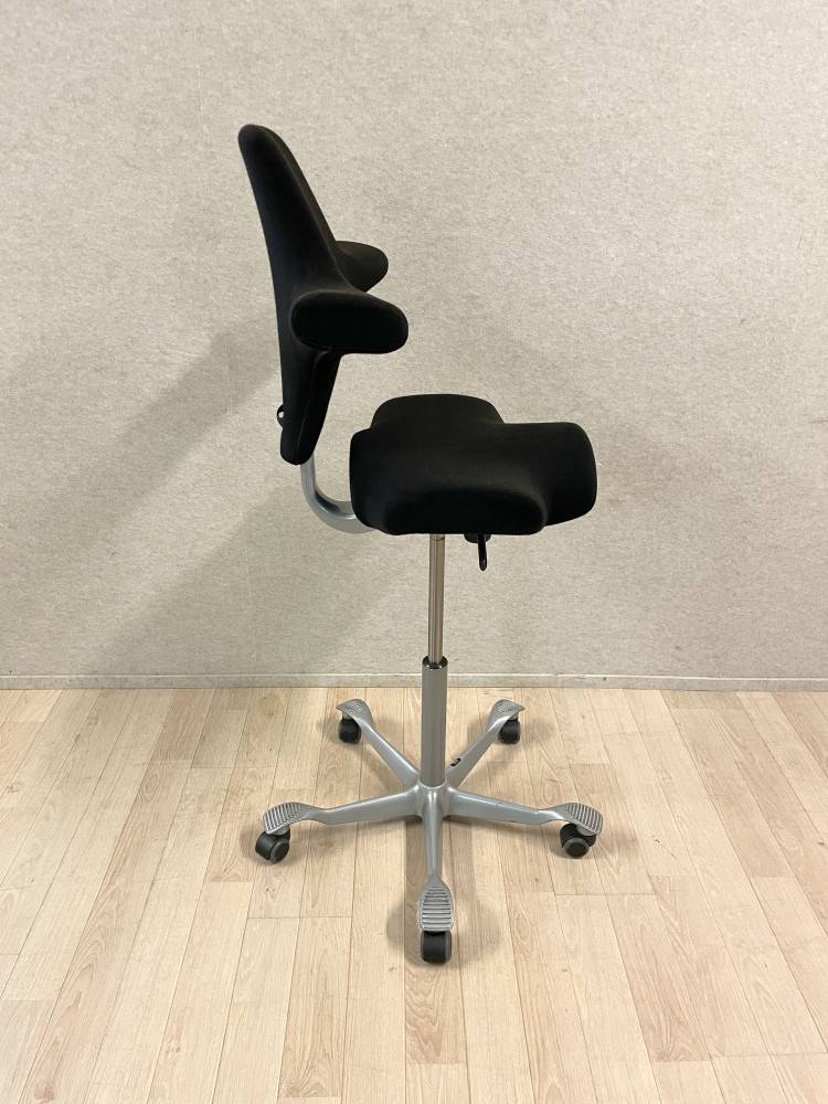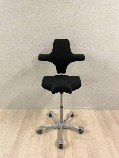 Ikoninen HÅG Capisco -työtuoli. Tyylikäs musta verhoilu antaa tuolille siistin ja modernin ilmeen.