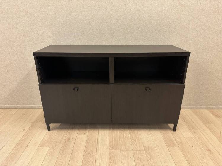 Siistikuntoinen ja tukeva käytetty kaappi, joka sopii hyvin myös TV-tasoksi. Alhaalla on kaksi vetolaatikkoa ja niiden yläpuolella kaksi avointa hyllytilaa, joihin mahtuu hyvin esimerkiksi laitteita tai säilytyskoreja. Monikäyttöinen kokonaisuus niin toimistoon kuin kotiinkin.