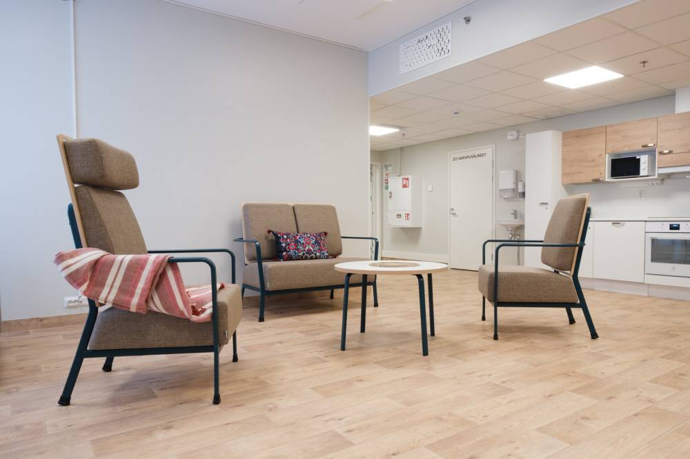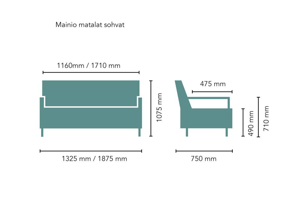 Sohvien mitoitus tukee istuutumista ja ylösnousua. Istuinkorkeus on hieman normaalia korkeampi ja istuma-asento luonnollisen pysty, mikä helpottaa käyttöä eri käyttäjäryhmille. Tukevat pehmusteet lisäävät mukavuutta ilman, että istuminen muuttuu liian pehmeäksi tai upottavaksi.