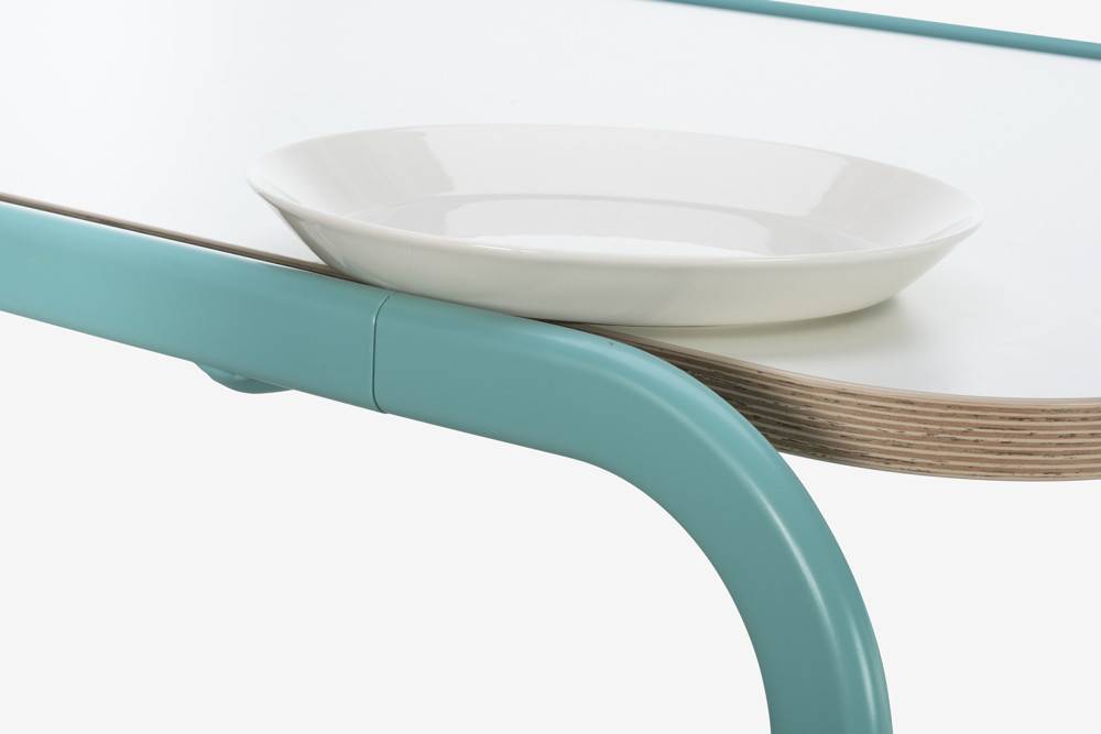 Runkorakenne on sijoitettu hieman pöytätasoa korkeammalle. Tämä muodostaa pöydän ympärille kevyen reunasuojan, joka auttaa estämään esimerkiksi lautasten tai muiden esineiden liukumista pöydältä lattialle. Samalla rakenne toimii liukuesteenä ja lisää pöydän vakautta tilanteissa, joissa siitä otetaan tukea.