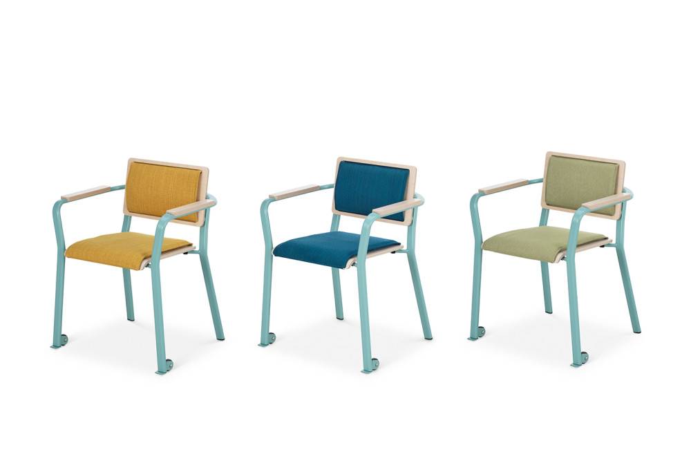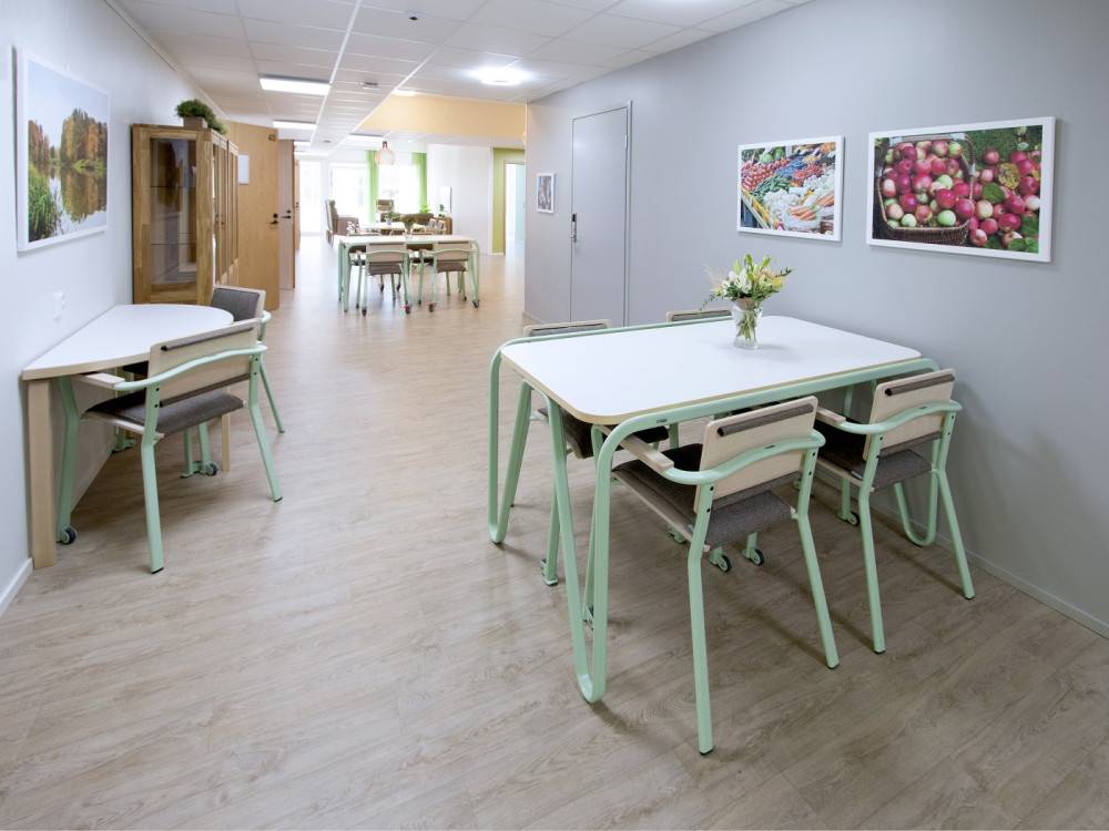 Värivaihtoehtojen avulla tuolit voidaan sovittaa hoivaympäristöihin, joissa kalusteiden selkeä hahmottuminen ja riittävät tummuuskontrastit tukevat käyttäjien turvallista liikkumista.