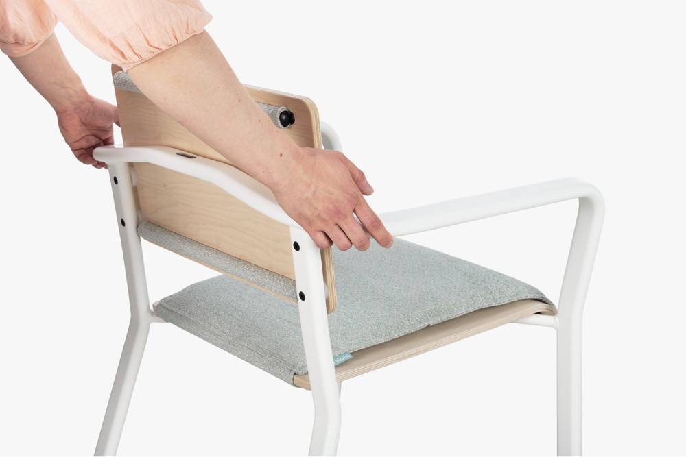 Tuolien muotoilu tukee istuutumista ja ylösnousua. Käsinojallisissa malleissa pitkät käsinojat tarjoavat tukevan otteen koko liikkeen ajan. Istuimen etureunan muotoilu vähentää painetta jalkoihin ja parantaa istuinmukavuutta.