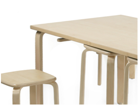 Silmu jakkarassa jalat ovat taivutettua, lakattua koivuvaneria ja istuinosa pinnoitettua laminaattia. Jakkaran voi ripustaa pöydän alle (ripustus pöydän lisävarusteena). Jaloissa huopanastat.