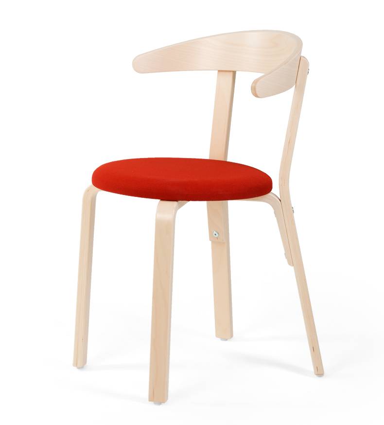 Silmu 53 tuoli on kevyt ja valmistettu koivuvanerista. Tuolin voi ripustaa selkänojasta pöydän päälle. Jaloissa huopanastat. Tuoli on pinottavissa 3-4 kpl päällekkäin.