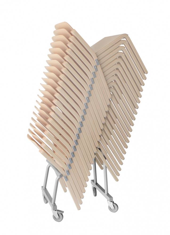 Silmu 16/17 on pinottavissa, lisävarusteena on saatavissa tuolien säilytyskärry, johon verhoilemattomia tuoleja saa pinottua 15 kpl tai verhoiltuja tuoleja 10 kpl.