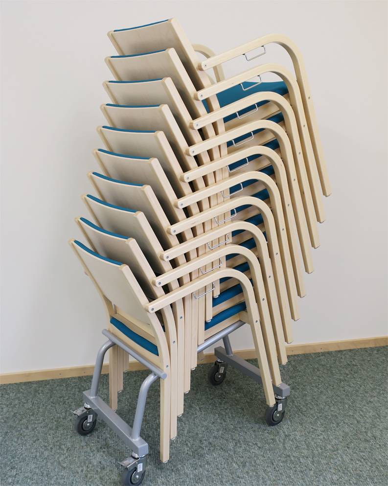 - tuolien säilytyskärry, johon tuoleja saa pinottua 10 kpl
