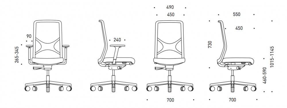 - istuimen korkeudensäätö kaasujousella, säätöväli 42-53,5 cm