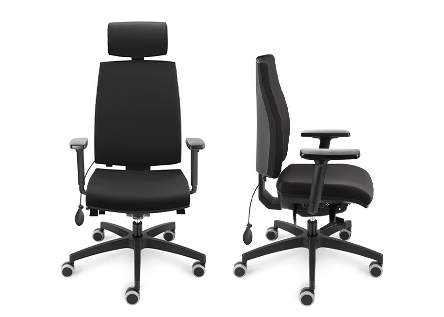 ASURA on tyylikäs ja ergonominen tuoli, jossa on erittäin hyvät säädöt. Istuin ja selkänoja on verhoiltu mustalla Evert kankaalla (hankauskesto 150.000 Martindalea). Tuolissa on 3D käsinojat ja sen voi valita niskatuella tai ilman.