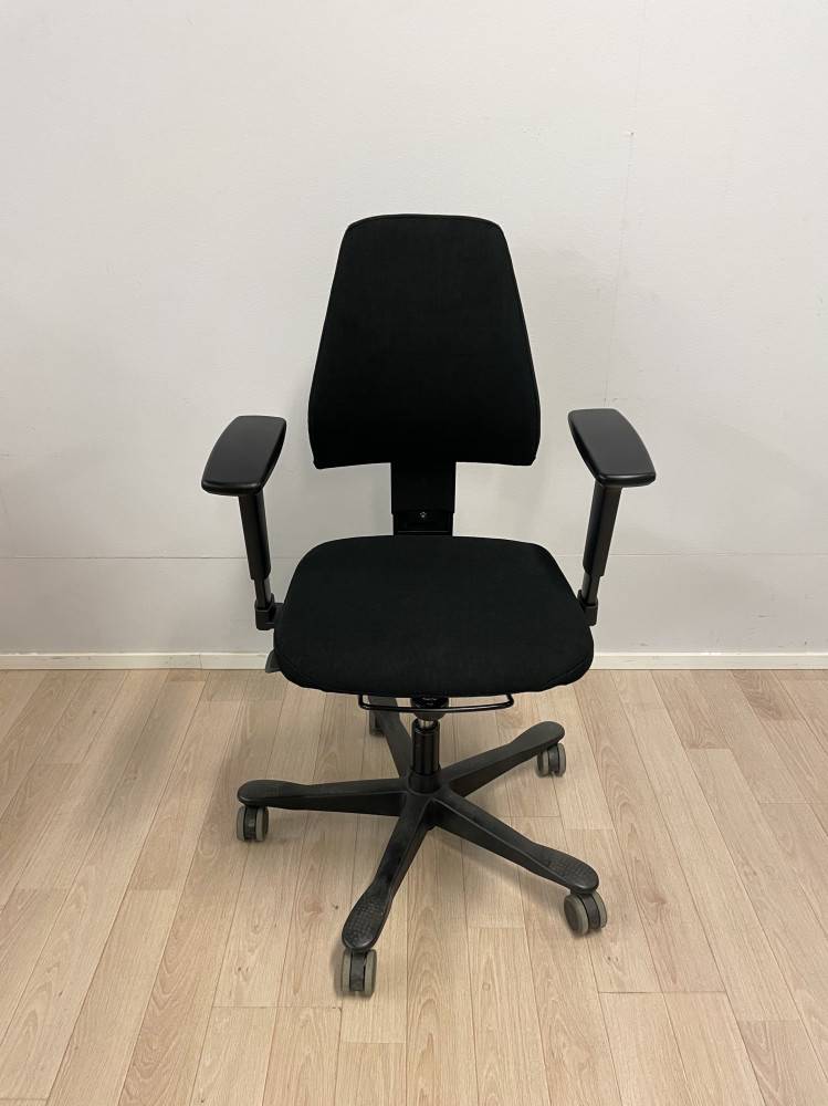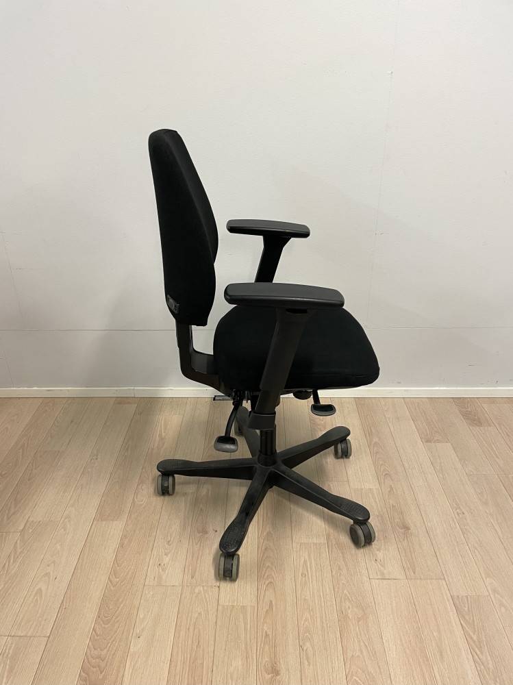 Hyviä Kinnarpsin 6000/8000 sarjan tuoleja uudelleen verhoiltuna. Värinä musta. Matala selkänoja, uudet 4-D käsinojat.