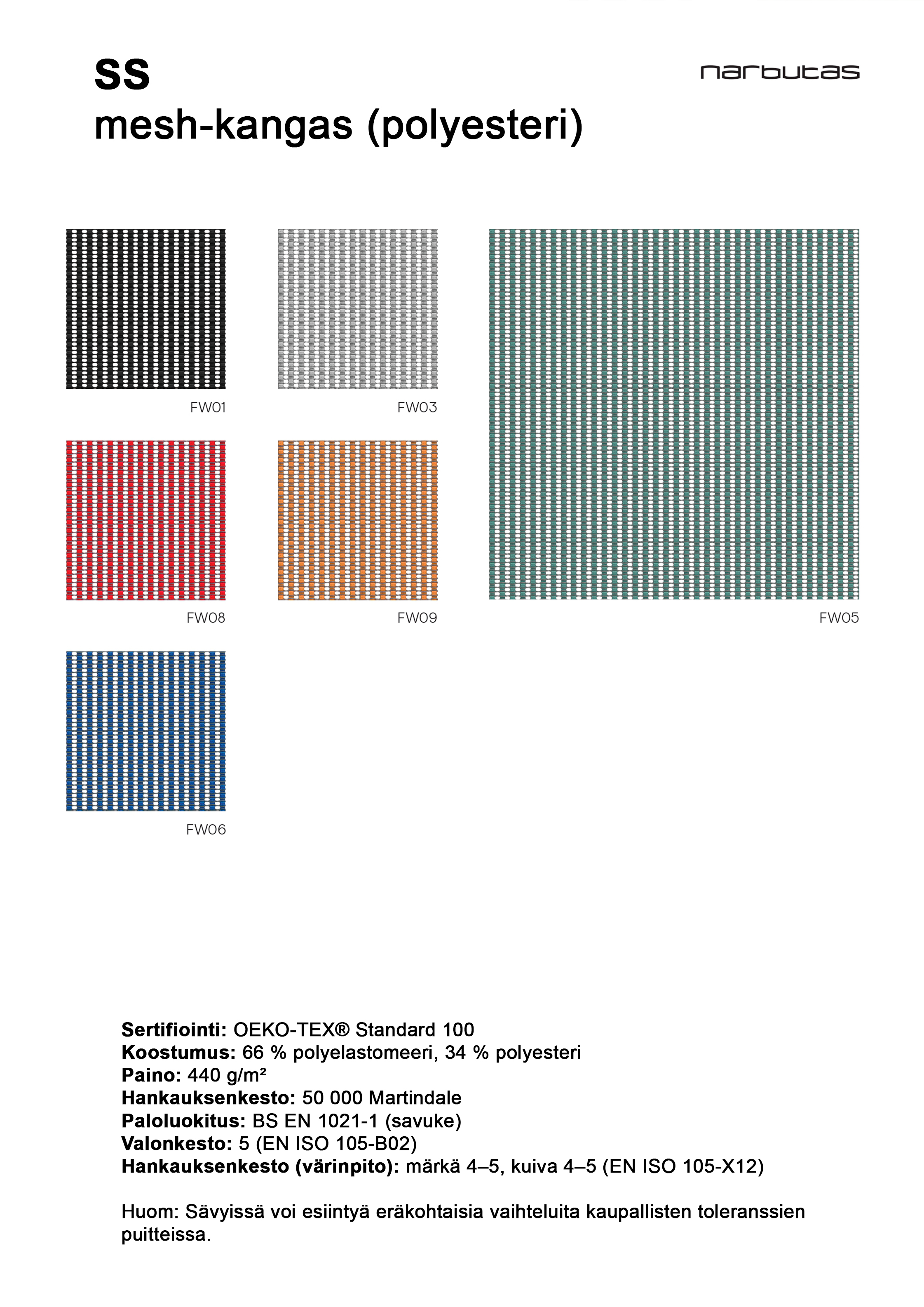 - verkkoistuin ja -selkänoja: meleerattu SS verkko, eri värivaihtoehtoja - katso lisää värikartasta