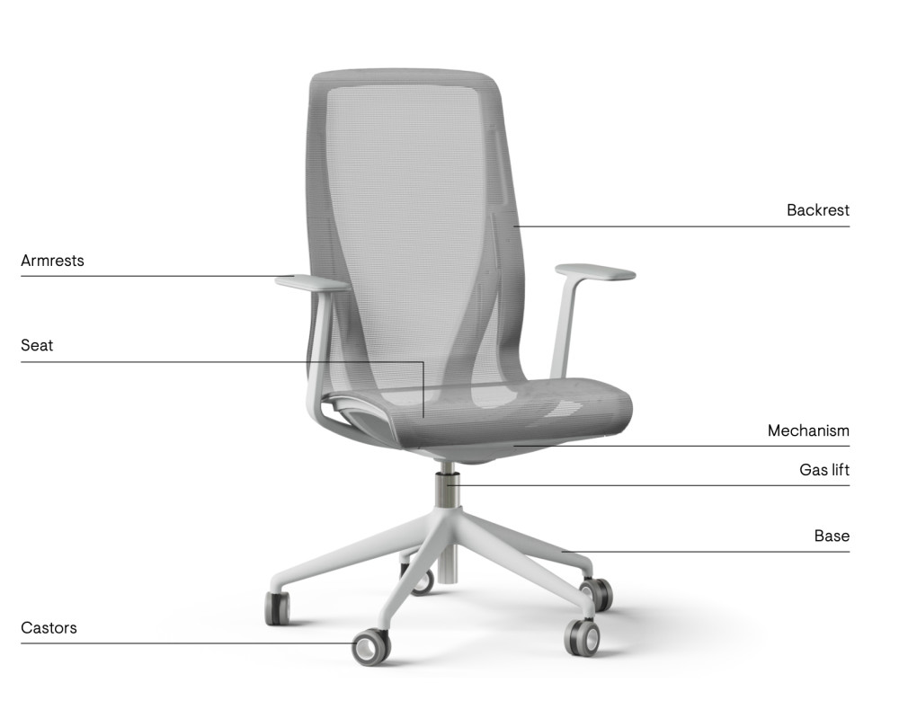 Selkänojan ja istuimen pyöristetyt muodot mukailevat istuvaa vartaloa. Tuolin säätiminiä toimivat "piilotetut napit" sivuilla ja mekanismi on integroitu rakenteeseen. Nämä ratkaisut antavat tuolille saumattoman, elegantin ulkonäön.