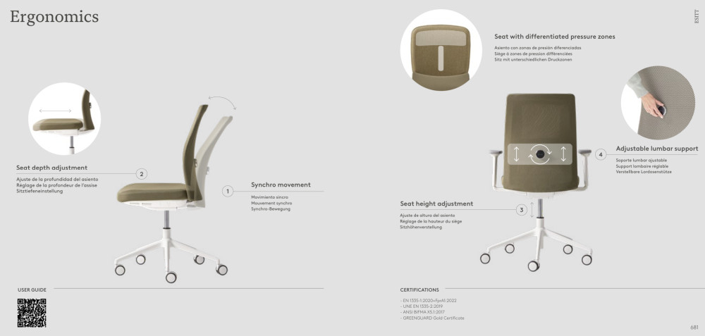 INCLASS ESITT on uusi työtuolikonsepti, jossa on täysin verhoiltu selkänoja ja piilotetut ergonomiset elementit. Tämä tuoli yhdistää ammattituolien mukavuuden, ergonomiset elementit ja brändille tyypillisen hienostuneen muotoilun. ESITT-tuolit sopivat yhä kodikkaampiin ja asiallisempiin työympäristöihin, mutta säilyttävät edistyksellisen ergonomisen suorituskyvyn, joka täyttää kansainväliset standardit.