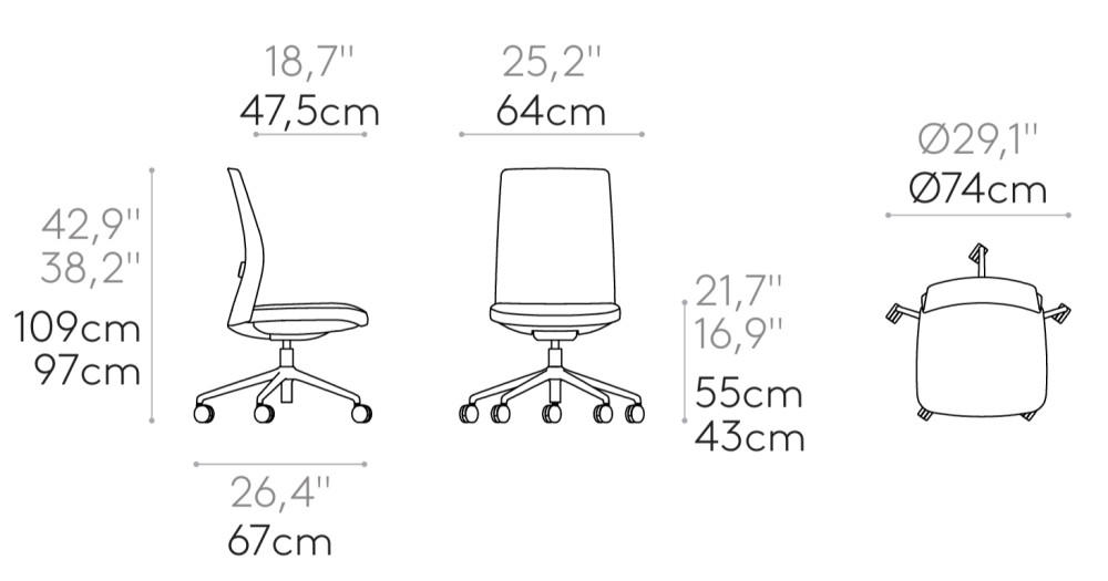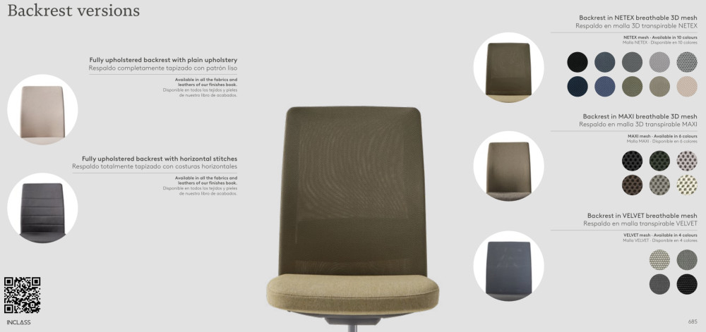 Selkänoja: Saatavana NETEX, MAXI ja VELVET hengittävästä 3D-mesh-kankaasta tai täysin verhoiltuna, valittavissa eri kankailla ja nahalla. Voit myös valita selkänojaan vaakasaumat.