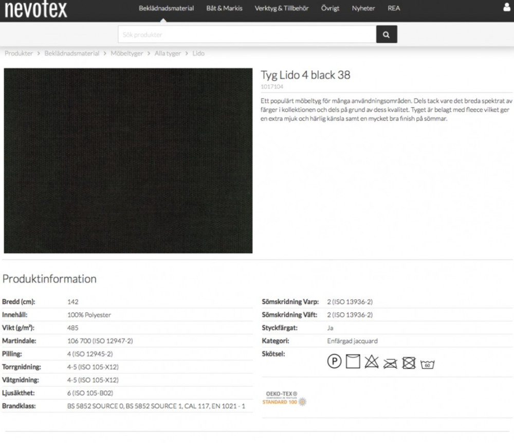 Tuoli on uudelleen verhoiltu Nevotex Lido julkitilakankaalla. Kankaan tarkemmat tiedot löytyvät lisäkuvasta.