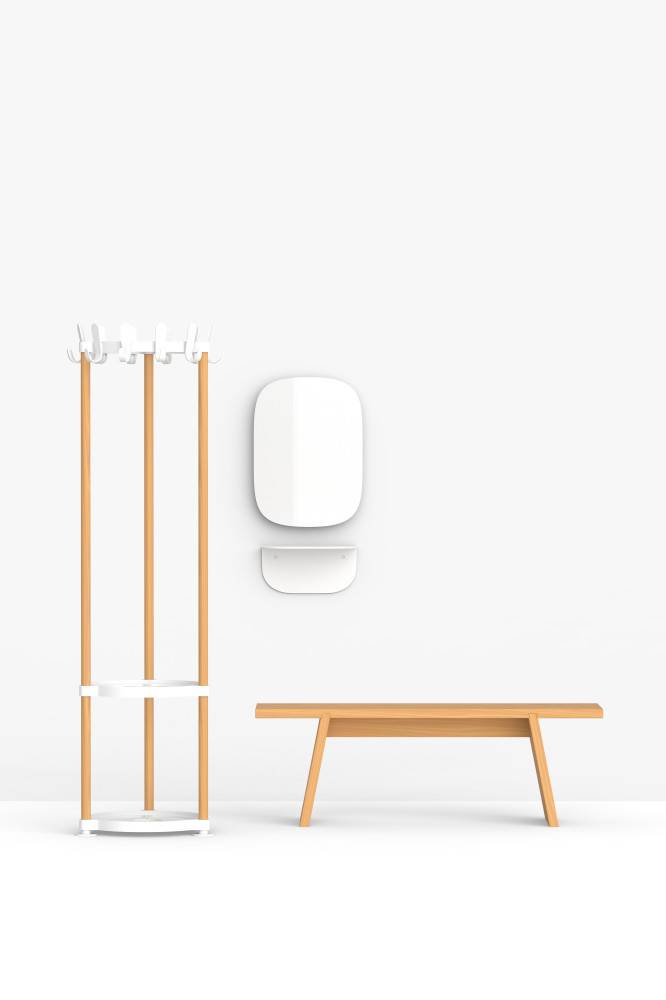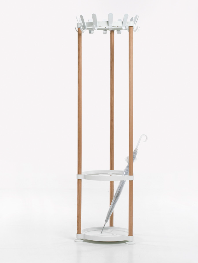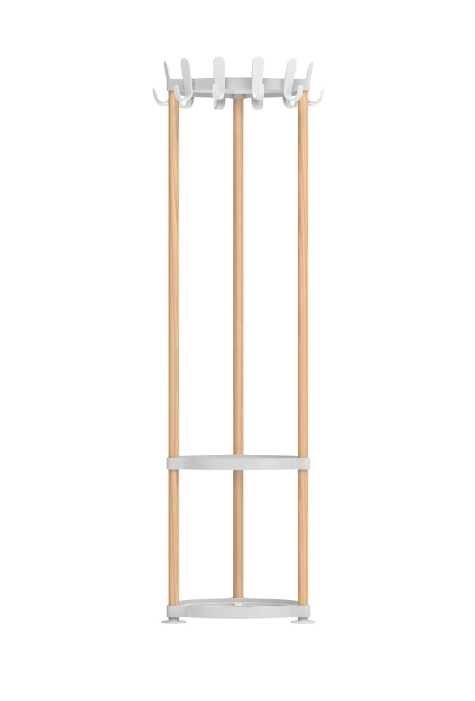 Sticks Round -sarjan naulakko erottuu edukseen ainutlaatuisella materiaalien yhdistelmällä: FSC®-sertifioitu eurooppalainen tammi, alumiini ja muovi luovat yhdessä tyylikkään ja kestävän kokonaisuuden. Avoin muotoilu ja kaksitoista tuplakoukkua tarjoavat runsaasti ripustustilaa niin toimistoihin kuin odotustiloihinkin.