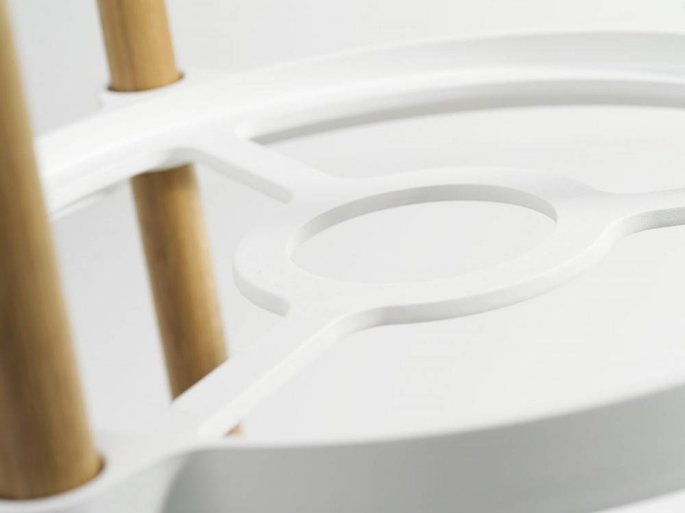 Naulakon kruunu, sateenvarjoteline ja jalusta on valmistettu alumiinista ja viimeistelty valkoisella, rakenteeltaan hienovaraisesti teksturoidulla lakalla. Selkeälinjainen muotoilu ja laadukkaat materiaalit tekevät Sticks Roundista ajattoman valinnan.