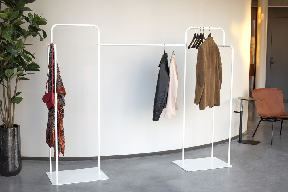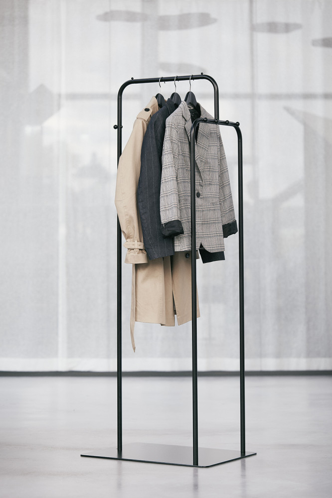 GÖTESSONS HANG IN THERE on minimalistinen vaateteline, jossa on nupit ja tilaa ripustimille. Yhdistä kaksi naulakkoa jatkotangolla, saat helposti pitkän naulakon.