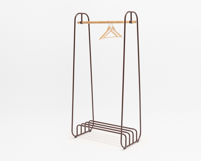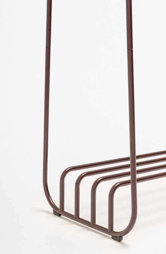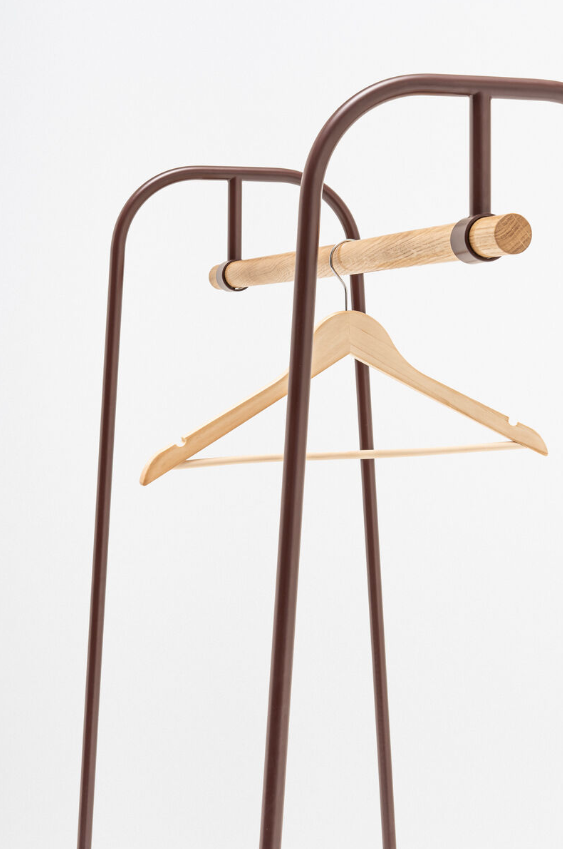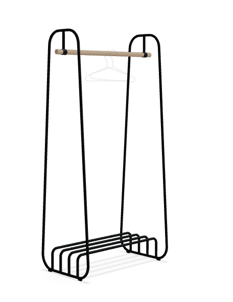 MDD Mono on minimalistinen ja monikäyttöinen naulakko, jossa yhdistyvät kevyt teräsrakenne ja yksityiskohdat massiivisesta saarnipuusta. Puinen ripustustanko toimii ulkovaatteiden säilytykseen, ja rungon alaosaan integroitu hylly tarjoaa käytännöllisen paikan laukuille tai kengille.