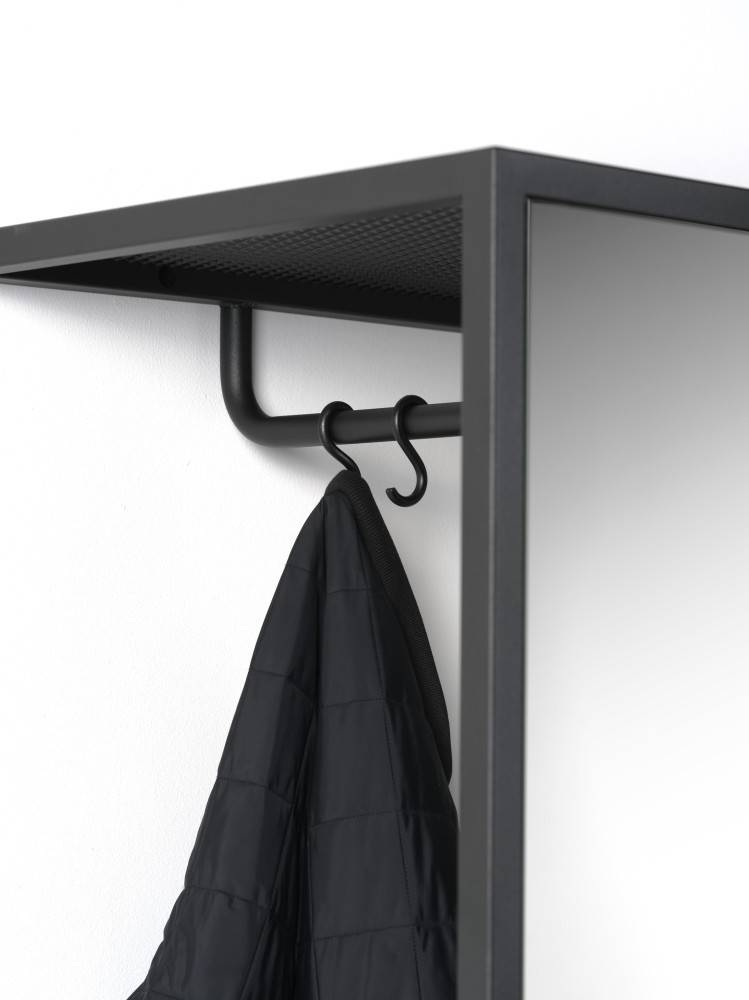 Rakenne on valmistettu hienorakenteisesti pulverimaalatusta teräksestä, joka tekee telineestä kestävän ja helppohoitoisen. Ajaton muotoilu sopii täydellisesti niin koteihin, toimistoihin kuin hotellien sisäänkäynteihin.
