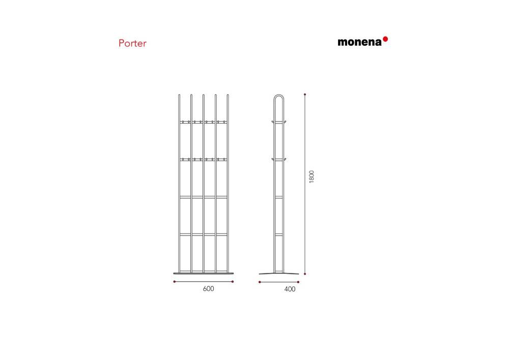 Porter on vahvarakenteinen pystynaulakko eteis- ja aulatiloihin, joissa naulakko toimii samalla myös tilaa jäsentävänä elementtinä. Sen molemmin puolin sijoitetut koukut mahdollistavat tehokkaan käytön keskellä tilaa, ja rakenne soveltuu yhtä hyvin tilanjakajaksi kuin sisääntuloalueen selkeäksi rajaksi. Porter on suunniteltu kestämään julkisten tilojen käyttöä, mutta se soveltuu myös kotiympäristöihin.