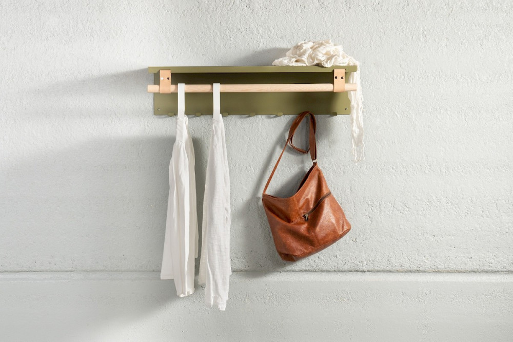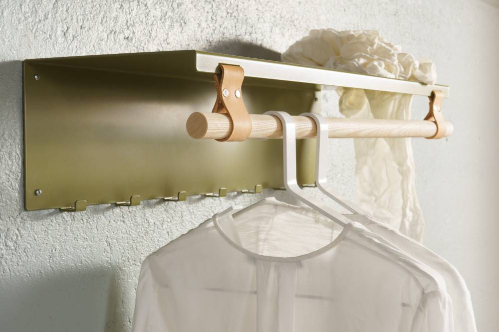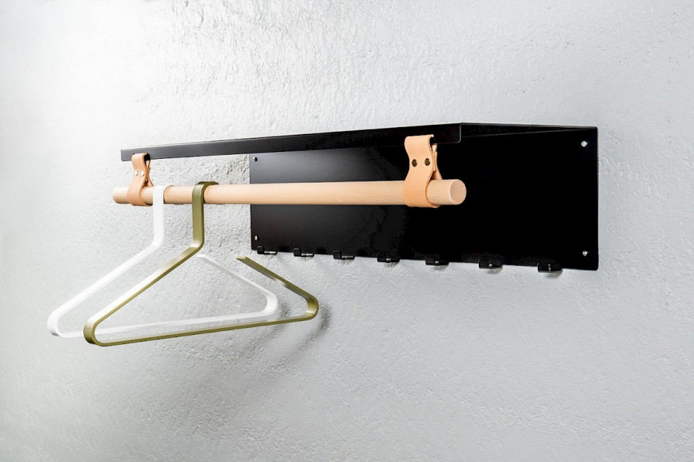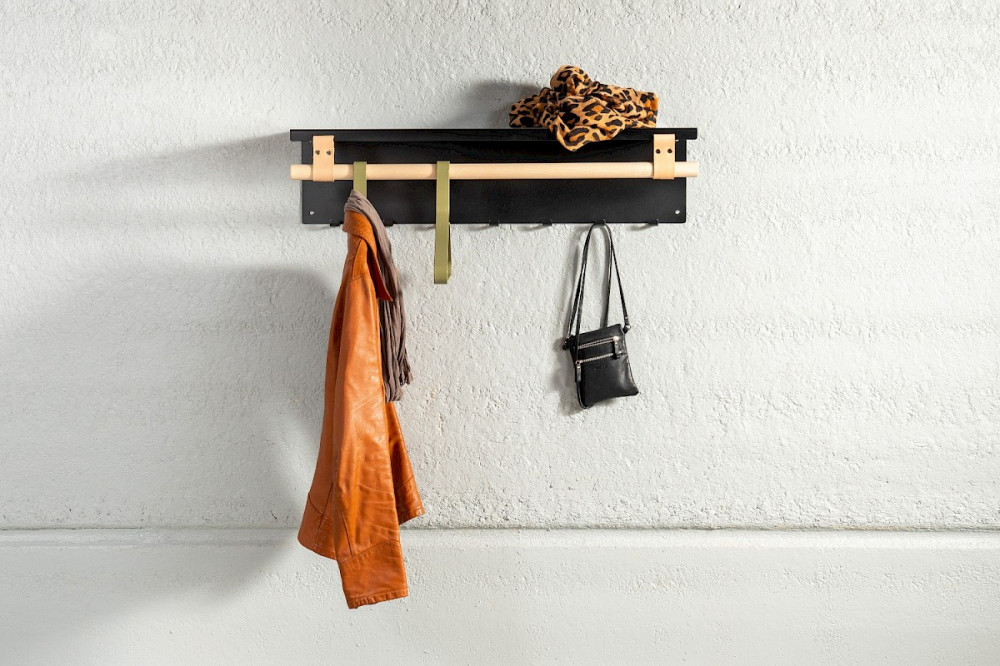 Rakenne yhdistää teräksisen rungon, puisen ripustintangon ja nahkaiset kannakkeet. Naulakkoon on saatavilla lisävarusteita, jotka laajentavat säilytyskapasiteettia.