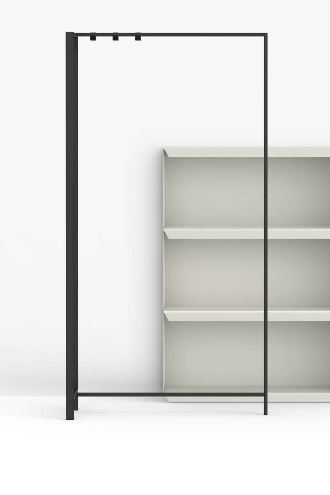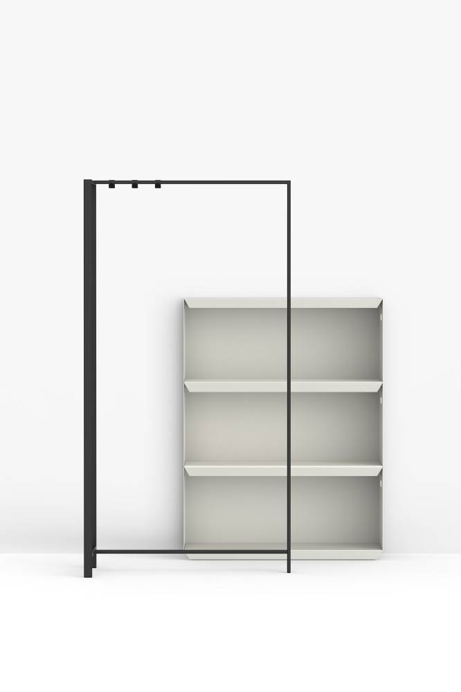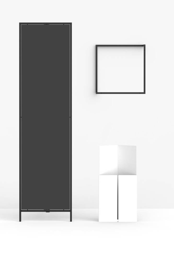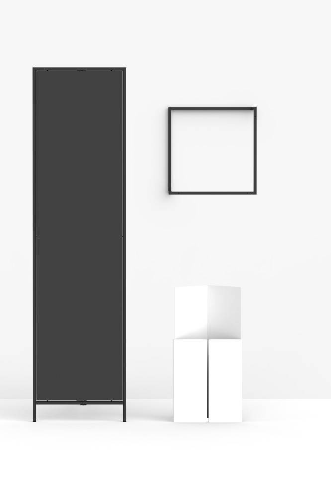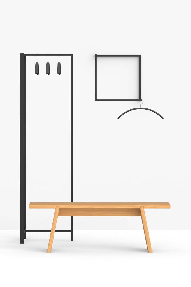 Runko on korkealaatuista epoksimaalattua terästä (saatavana kahdessa värissä). Voit valita ison naulakon tai pienen naulakon. Lisävarusteena päätyyn saatavana paneeli, peili tai ilmoitustaulu. (Lisävarusteiden kanssa Frame suositellaan kiinnitettäväksi seinään, parhaan vakauden saavuttamiseksi.)