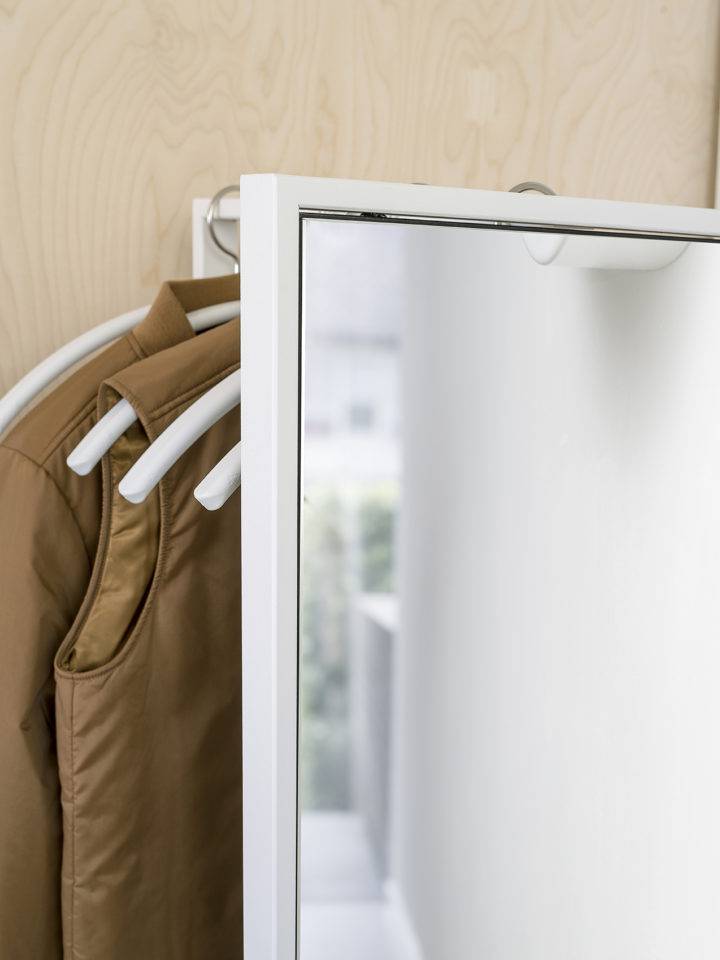 Frame on monipuolinen naulakko, joka toimii vaatehuoneena, peilinä tai väliseinänä. Frame naulakon eri päätyvaihtoehdoilla voit sisustaa tilan haluamaasi tyyliin. Valitse oma tyylisi!