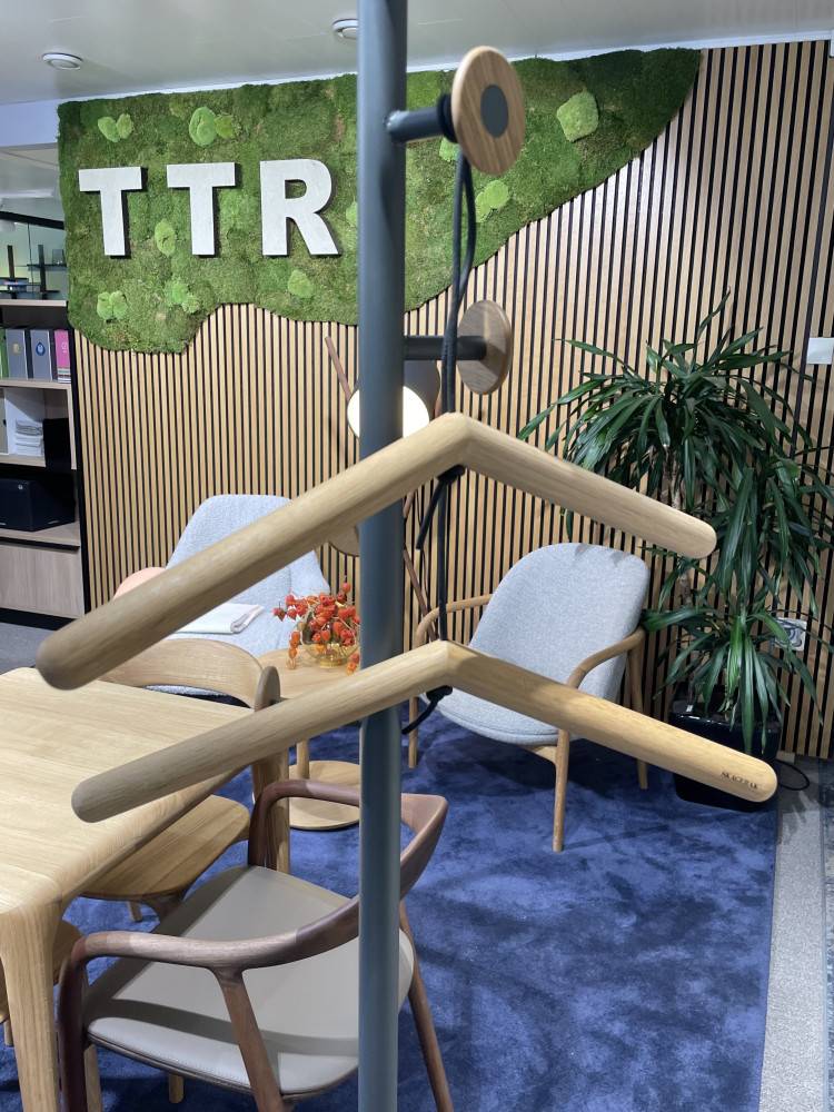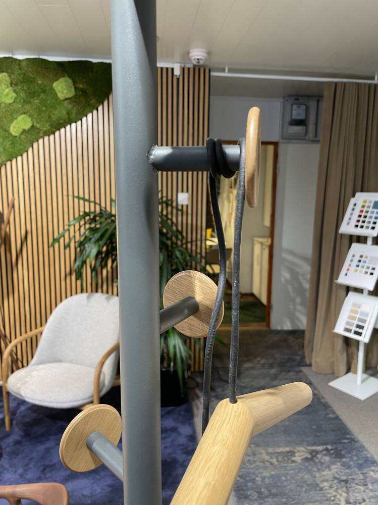 Georg henkarit on yhdistetty nahkahihnalla ja niiden korkeutta voi kätevästi säätää.Materiaali tammi/nahka.