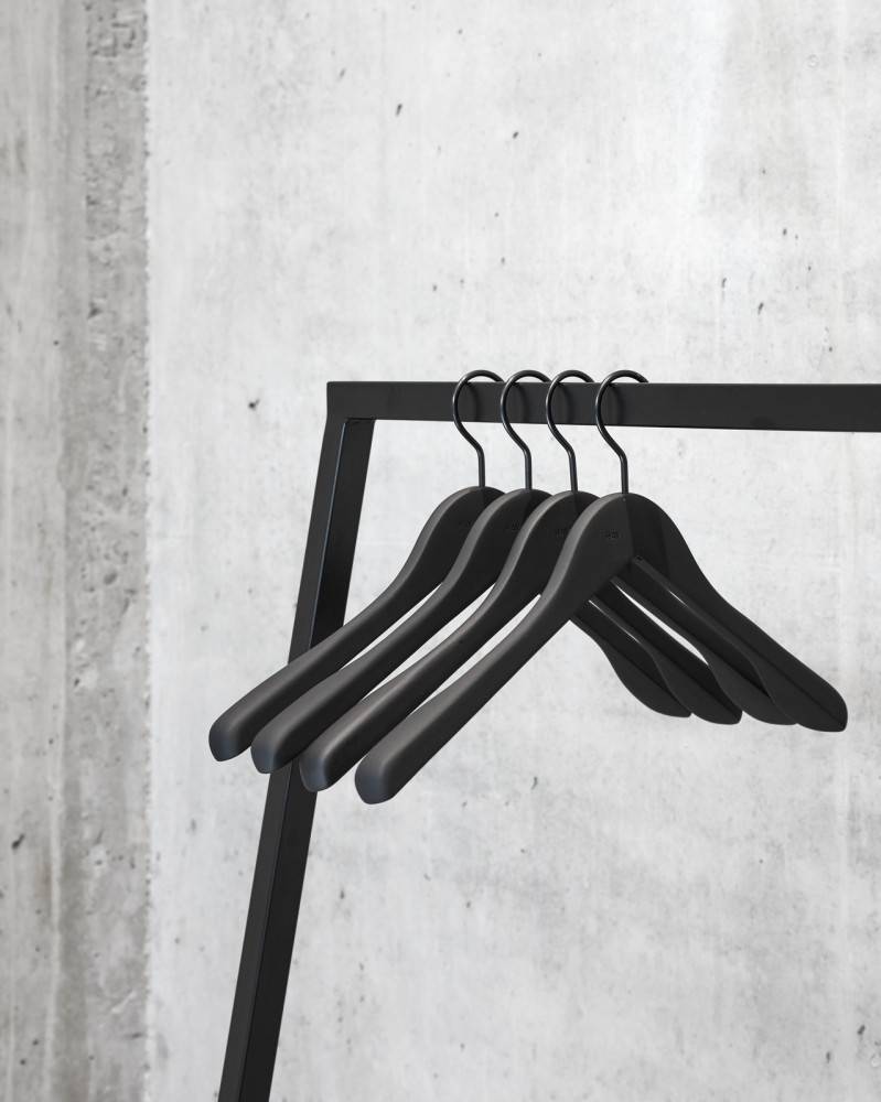 Soft Coat on tyylikäs puinen vaateripustin, jonka leveät hartiat ja mattapintainen kumipinnoite estävät vaatteita liukumasta. Ripustin on suunniteltu pitämään takit ja jakut paikoillaan hellävaraisesti mutta tehokkaasti.