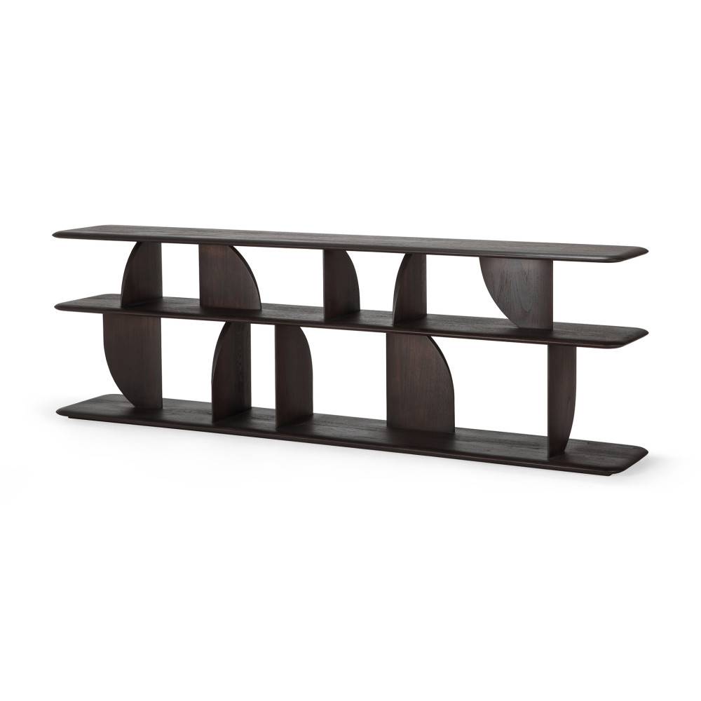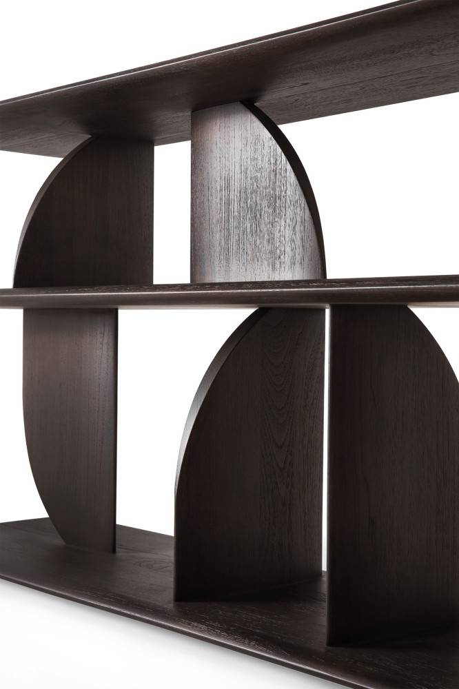 Ethnicraft Geometric on massiivipuinen konsolipöytä, jonka muotoilu perustuu toisiinsa leikkaaviin muotoihin. Rakenteessa syntyy valon ja varjon vaihtelua eri kulmista katsottuna. Pöytä toimii näyttävänä tasokalusteena ja tarjoaa säilytystilaa usealla tasolla.