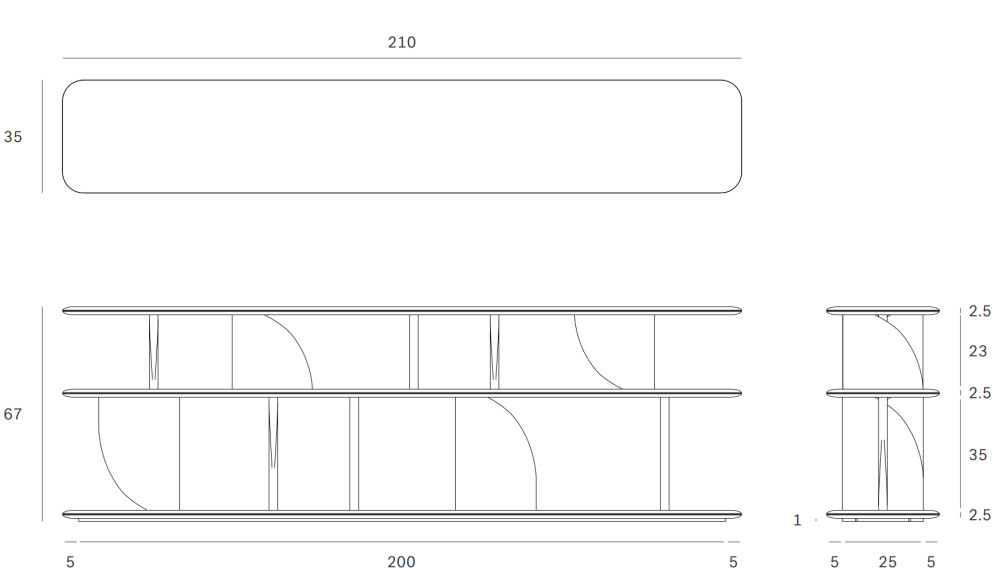 Rakenteessa on useita tasoja sekä kiinteä hyllytaso. Molemmissa vaihtoehdoissa mitat ja rakenne ovat samat.