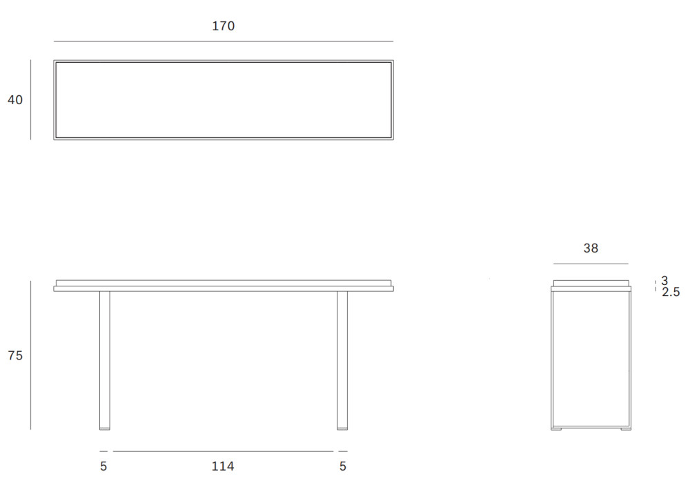 Pöydän kansi on mineraalipohjaista materiaalia, jonka pinta on käsin viimeistelty ja lakattu vesipohjaisella lakalla. Runko on jauhemaalattua metallia.