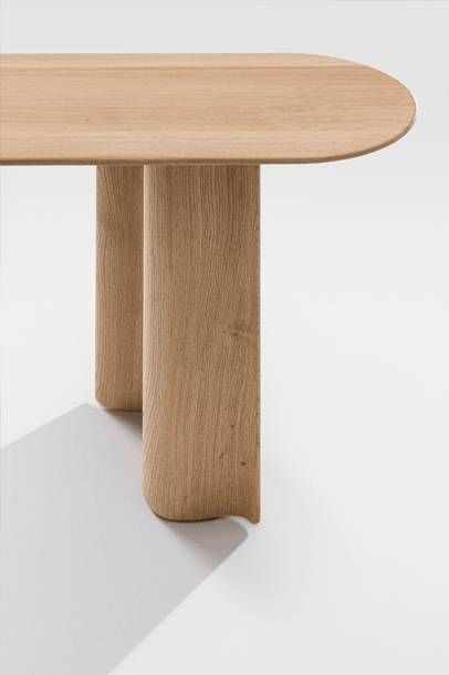 Pöytä on valmistettu massiivipuusta. Aaltoileva jalkaosa muodostaa rakenteellisen tuen pöytälevylle ja luo kevyen vaikutelman. Pöytälevy on massiivipuuta ja sen reuna on profiloitu. Pintakäsittelynä on luonnonmukainen kovaöljyvaha tai sävytetyssä tammessa mattalakka.