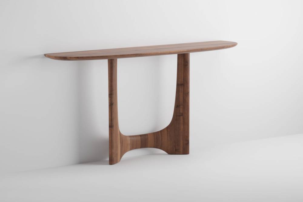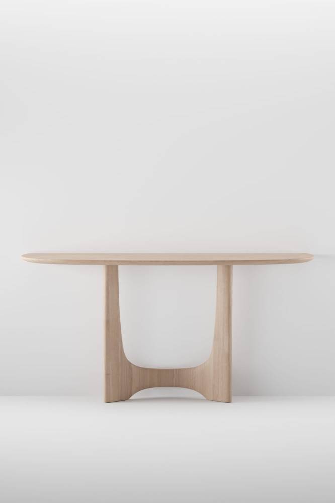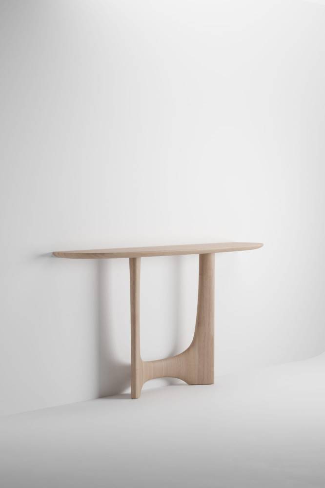 Oskar konsolipöytä on massiivipuinen säilytys- ja tasokaluste, joka perustuu kokoelman pöytien arkkitehtoniseen muotokieleen. Se soveltuu esimerkiksi eteistiloihin, käytäville ja oleskelutiloihin, joissa tarvitaan selkeälinjainen ja tilaa jäsentävä taso. Muotoilu perustuu modernistisiin pylväsrakenteisiin, mikä antaa kalusteelle tunnistettavan mutta hillityn ilmeen.