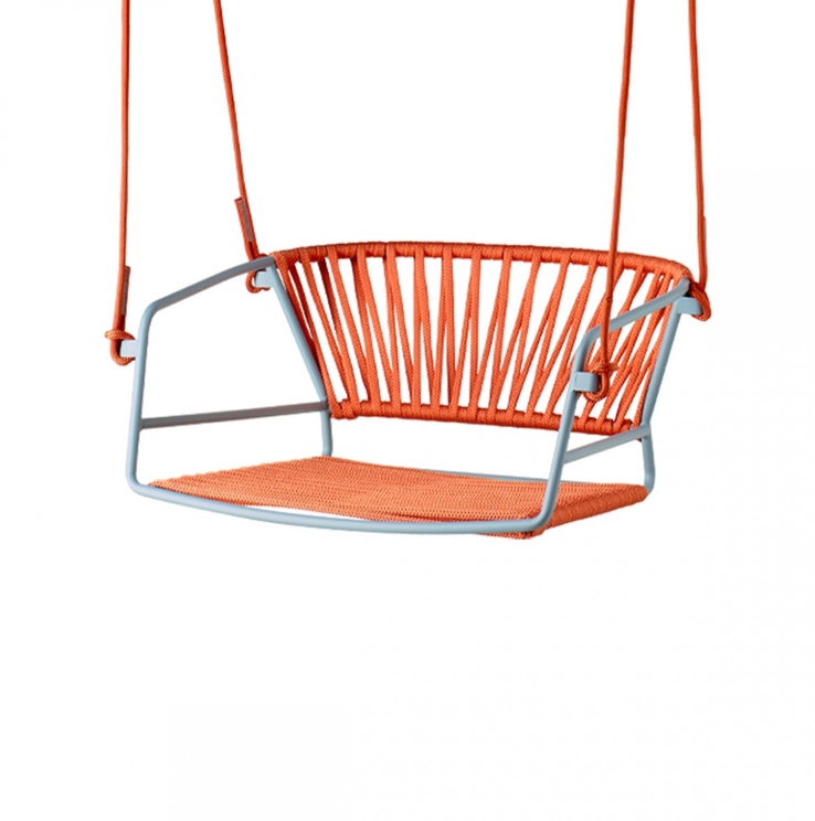 SCAB Lisa Swing istuinosa ja selkänoja on valmistettu kierrätetystä punoksesta, mikä on valmistettu 100% kierrätetystä polyesteristä. Se on värjätty, myrkytön, kestävä ja helppo ylläpitää. Runko maalattua putkiterästä. Kiinnitys yhdellä koukulla tai kaksi koukkua ja välipuu. Soveltuu sisä- ja ulkokäyttöön.