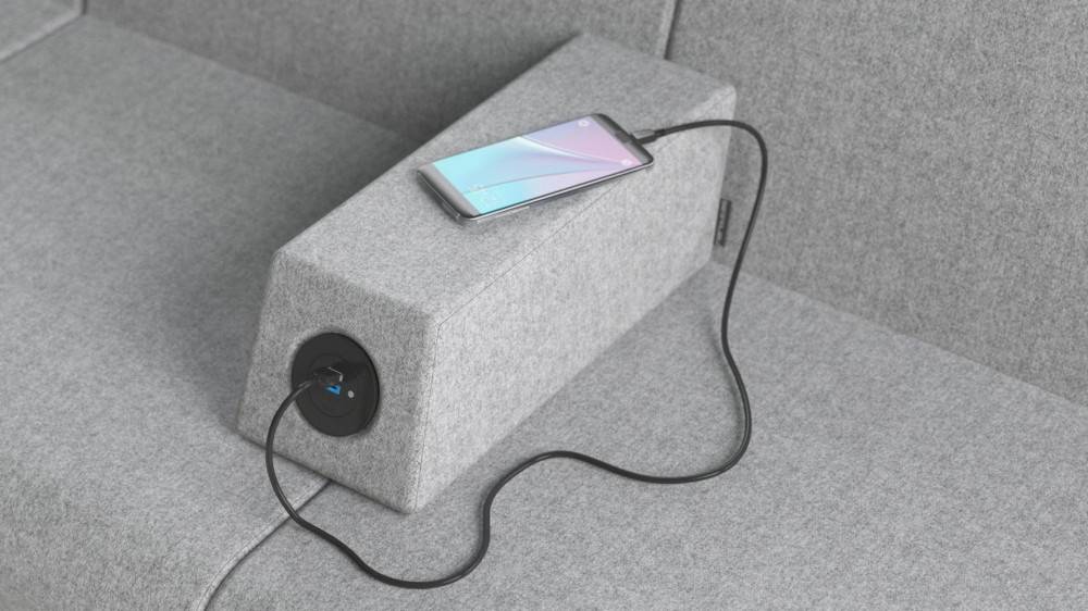 Käsinojamoduuleihin saatavissa myös 1 AC pistorasia 100-230 V tai 2 USB pikalaturia (A+C, max 5A) upotettuna.