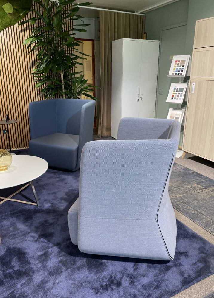Tyylikkäitä Tanskalaisia nojatuoleja pyörivällä jalustalla.Kangas Kvadrat Steelcut Trio.