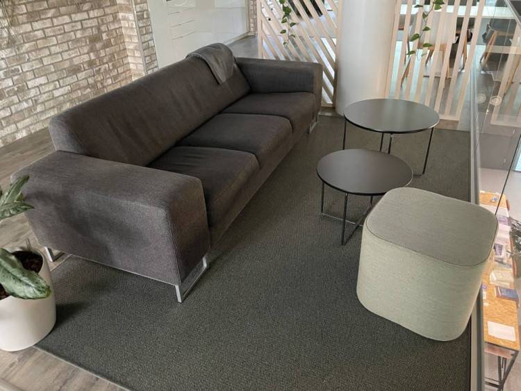 Laadukas Asko-sohva, 3-istuttava malli. Sohva on verhoiltu tummanharmaalla kankaalla, joka sopii monenlaiseen sisustukseen. Kestävä ja ajaton design, metallijaloilla.