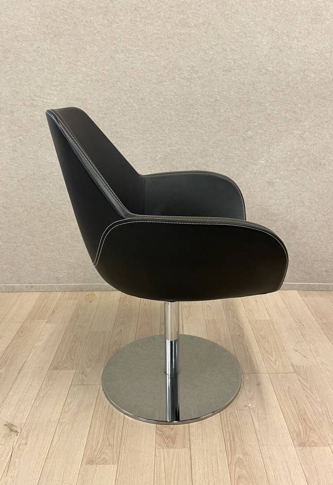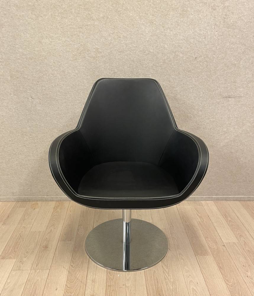 Fan-nojatuoli on täydellinen yhdistelmä modernia muotoilua, erinomaista istuinmukavuutta ja laadukkaita materiaaleja. Tyylikkään musta verhoilu valkoisilla tikkauksilla antaa tuolille hienostuneen ilmeen, joka sopii niin toimistoon, neuvottelutilaan kuin kotiinkin.