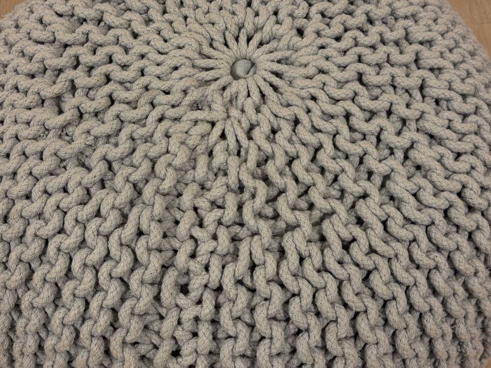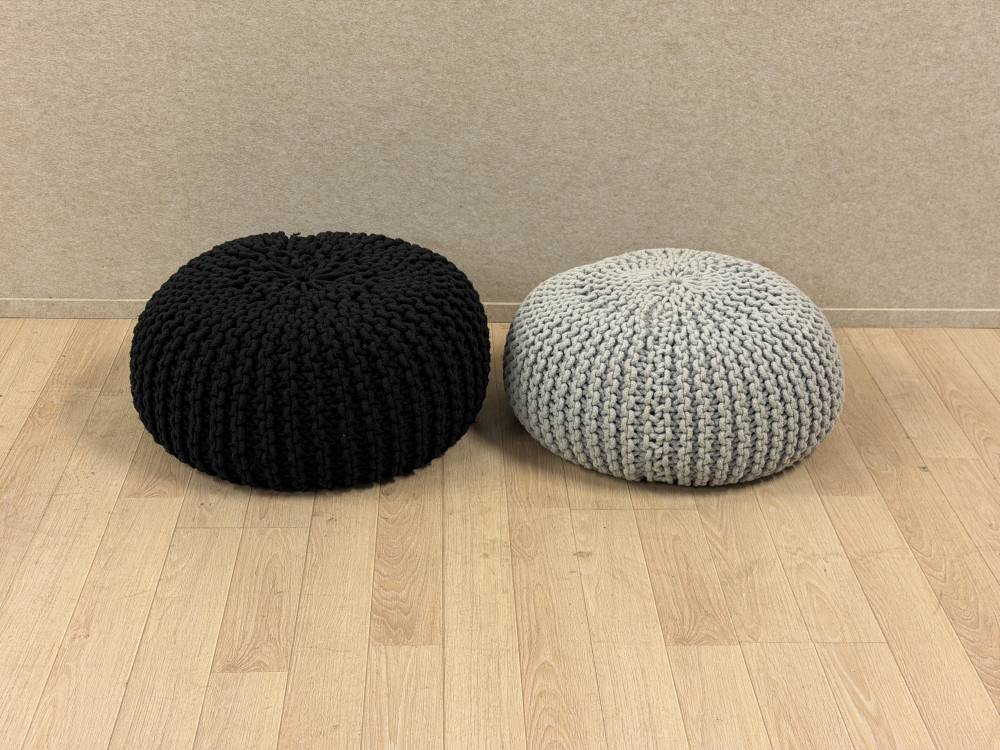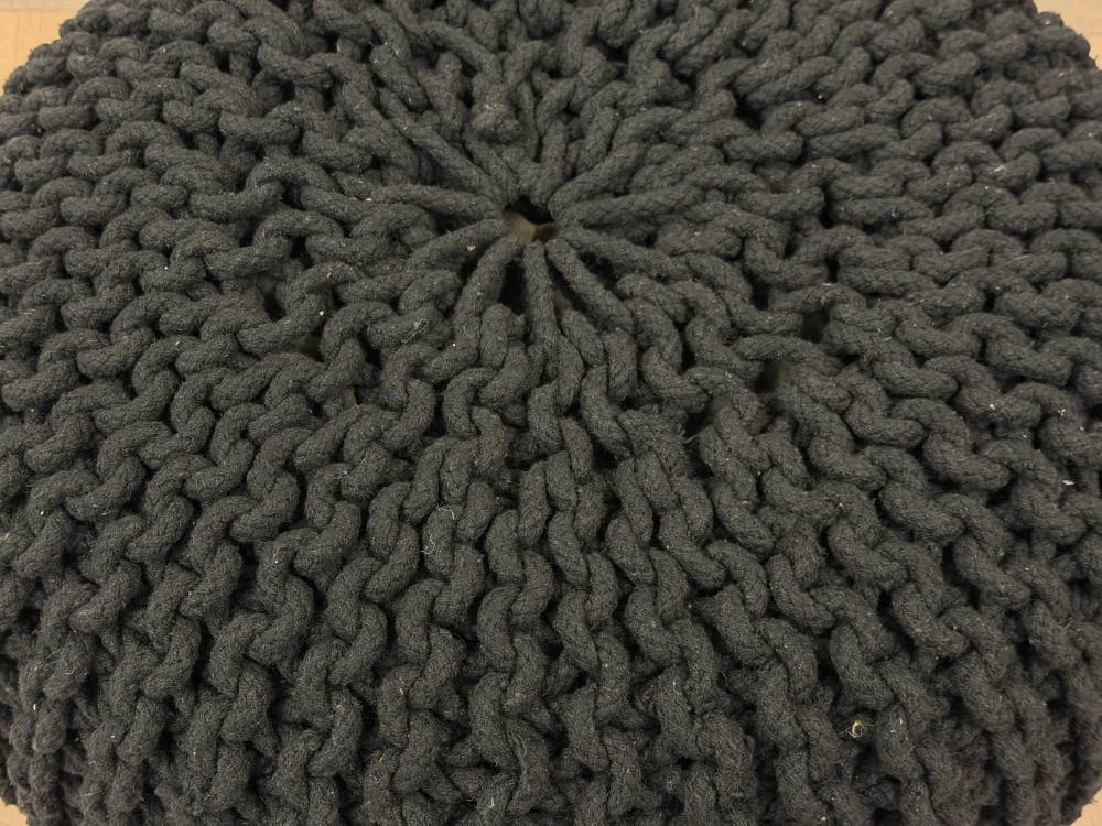 Neulottu rahi on monikäyttöinen ja kevyt istuin tai jalkarahi toimisto- ja oleskelutiloihin. Tämä käytetty rahi on neulottua materiaalia, ja sen halkaisija on noin 50 cm.