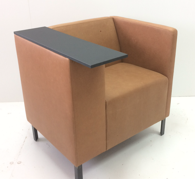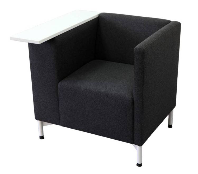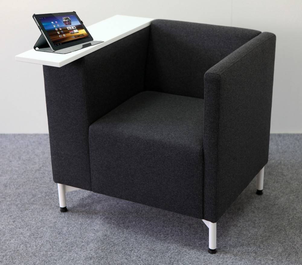LAPTOP nojatuoli on kätevä esim. aulatuoliksi tai monitoimitilaan. Nojatuolissa on oikealla puolella pöytätaso, jossa voi pitää tietokonetta tai kahvikuppia. Verhoiluvaihtoehtoja on useita. Esim. Wooly / Wooly Plus villaverhoilu on kestävä ja helppohoitoinen ja värivaihtoehtoja on monta.